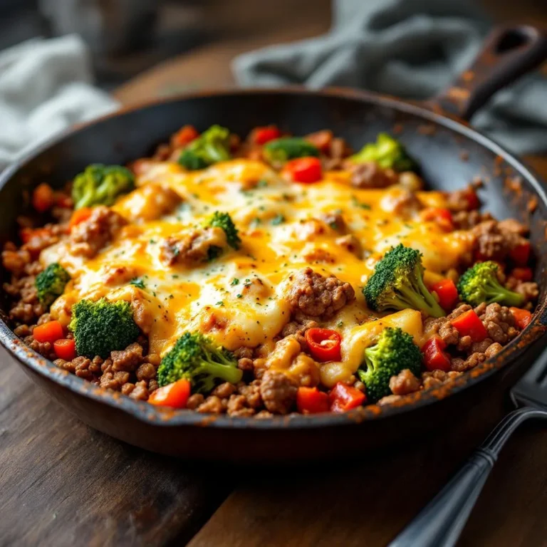 Keto Minced Beef Skillet with Cheesy Broccoli and Peppers